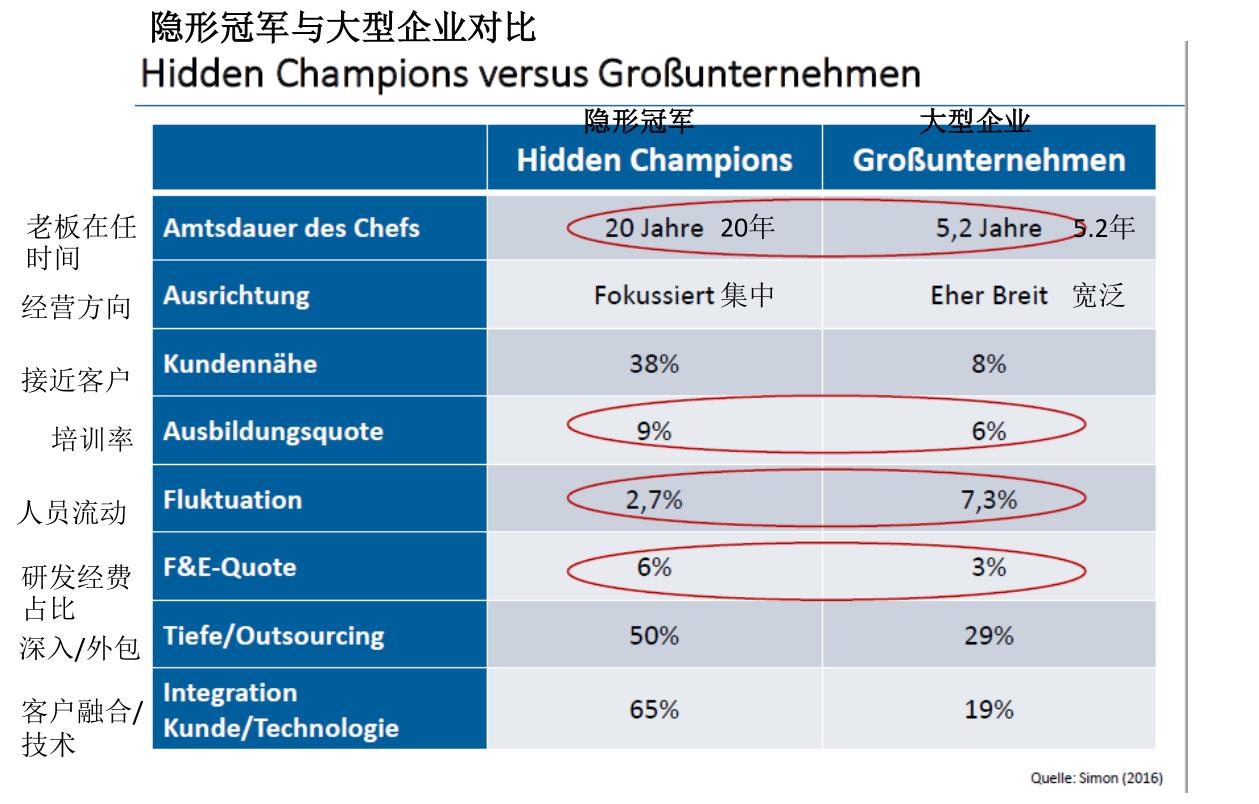 在这种发展愿景之下,企业倾向于选择细分市场并长期耕耘,建设设施齐备的工厂,建立自身行业优势,创造自身最大的价值;拥有高度的创新力,通过持续的研发和技术创新,获得专利和技术优势,将某一类或某一项产品做到全球领先的水平。在不断强化企业发展愿景的前提下,隐形冠军在企业内部形成了良好的旺财28,企业家树立榜样,员工对企业愿景的高度认同,专注于企业核心精神和目标。在工业4.0真正实现之前,人的要素一直是决定企业生产技术水平最关键的一环。德国企业中对人才的培养著名的“双元制”模式为隐形冠军的成长提供了充足且高水平的人力资源。同时,人的要素也体现在了市场侧,以客户为导向,解决客户的问题,满足客户的需求,站在客户的角度综合考虑产品性能。