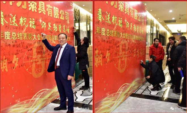 年会开始前,参会嘉宾陆续到场,并在书写着“只争朝夕 不负韶华”的年会主题签名墙前进行签名并留影纪念。