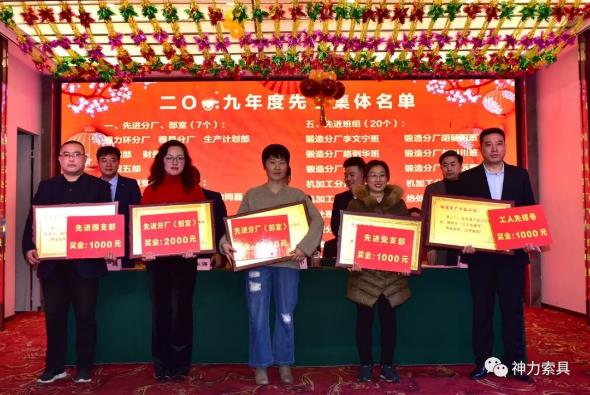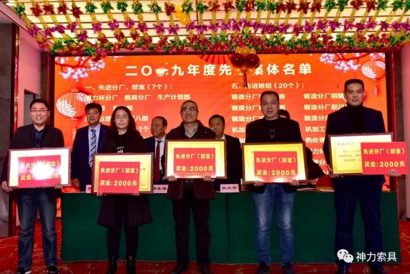 在表彰二零一九年度先进集体和先进个人的决定中,共推选出先进分厂(部室)7个、先进党支部1个、工人先锋号1个、先进团支部1个。公司授予奖牌并奖励各先进分厂(部室)2000元,先进党支部、工人先锋号各1000元。