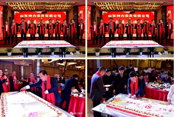 在热烈地掌声中,公司领导上台致新春贺辞,感谢大家的辛勤付出和不懈努力,也希望大家再接再厉再创辉煌 。然后,公司董事长杜亚中先生亲自切开神力索具成立55周年“不负韶华 只争朝夕”的蛋糕,并由公司总经理杜大平先生亲自分发!神力一家亲,同甘共苦,如是而已!