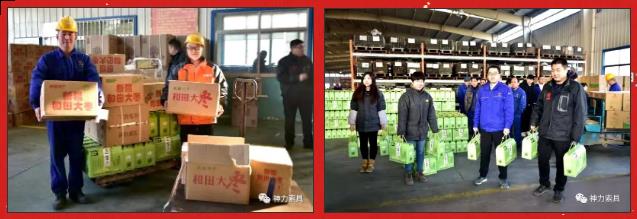 为了做好年终福利的筛选工作,公司早早组织相关人员制定发放标准,提前进行年货的采购计划,并广泛征求听取了有关集体福利的意见和建议,确保把福利送到每一位家人心里,让家人们都能过一个祥和、快乐的春节!在春节福利发放的现场,气氛尤为热烈。欢声笑语不断,感慨赞美之词不绝。你来我往,手提肩扛的情景,随处可见。大有一股福利到手,天下我有的感觉。现场洋溢着一片温馨和谐,看在眼中,暖在心里,身为神力人真好!