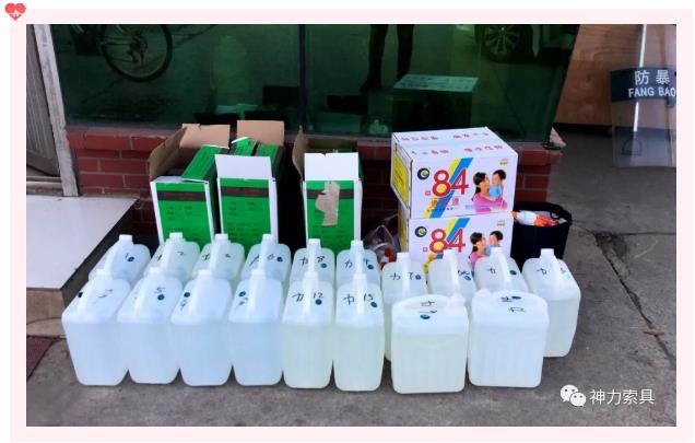 自疫情发生,医用口罩、医用酒精 、84消毒液等防护用品就是最为紧缺、珍贵的物资。公司总经理杜大平看在眼里,记在心中,经多方联系,筹集到84消毒液900斤,75度酒精360斤,极大地缓和了防护物资的需求。