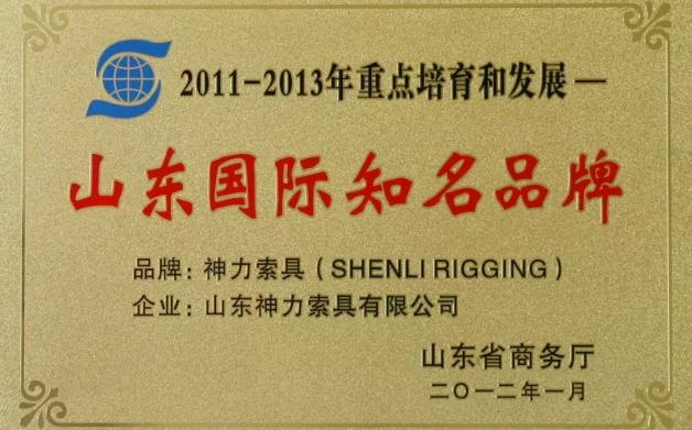 喜讯丨神力索具荣获“2021年度山东省高端品牌培育企业”称号