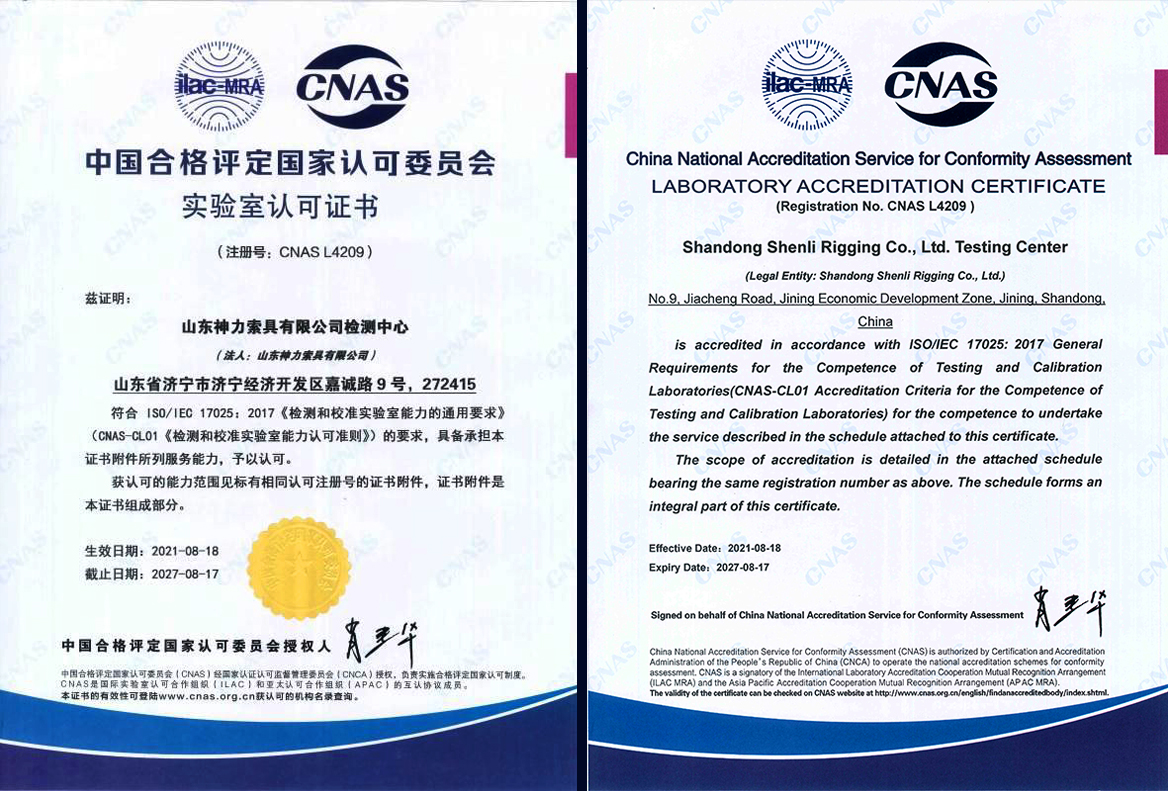 热烈祝贺神力索具检测中心顺利通过CNAS国家认可实验室认证