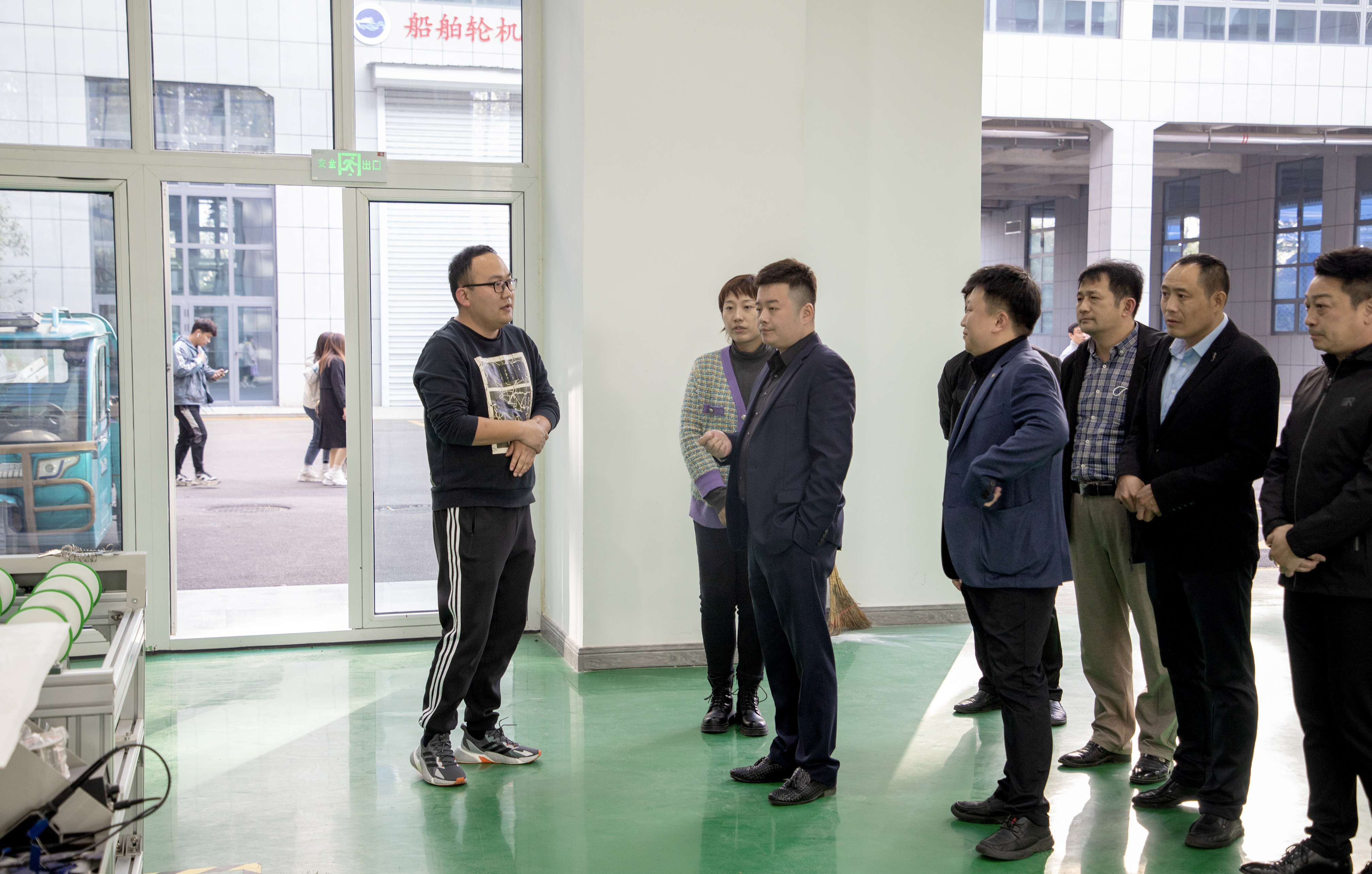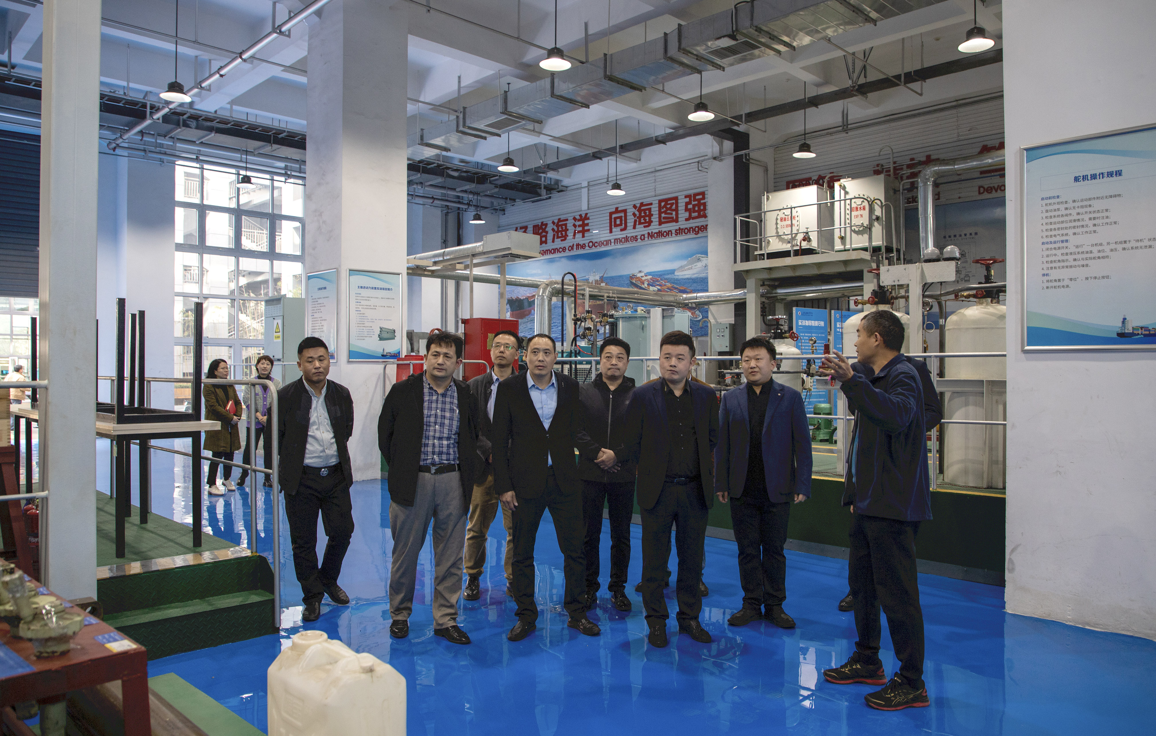 总经理杜大平一行首先来到了山东理工职业学院综合实训大楼,分别参观了大学科技园展厅、光伏智能生产中心、中德智能制造公共实训基地、无人机综合实训基地、船舶轮机技术实训中心,又亲自体验了VR虚拟仿真技术和沉浸空间。