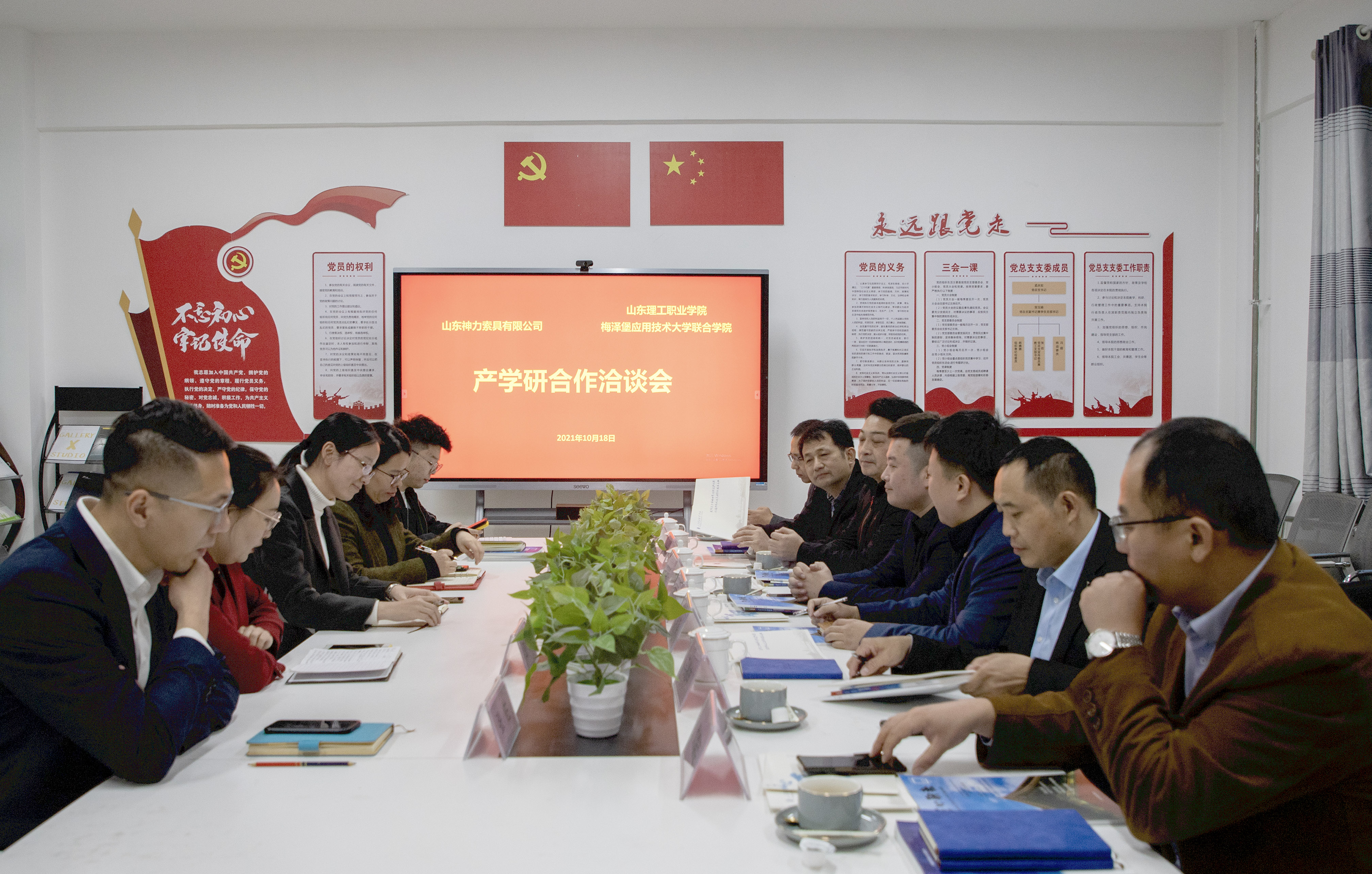 金秋十月,菊香满园。为充分发挥校企双方优势,加强产学研合作, 提升企业竞争力,10月18日下午,总经理杜大平带领公司办公室、生产计划部、科学技术部、信息化办公室等部门负责人赴山东理工职业学院交流合作。