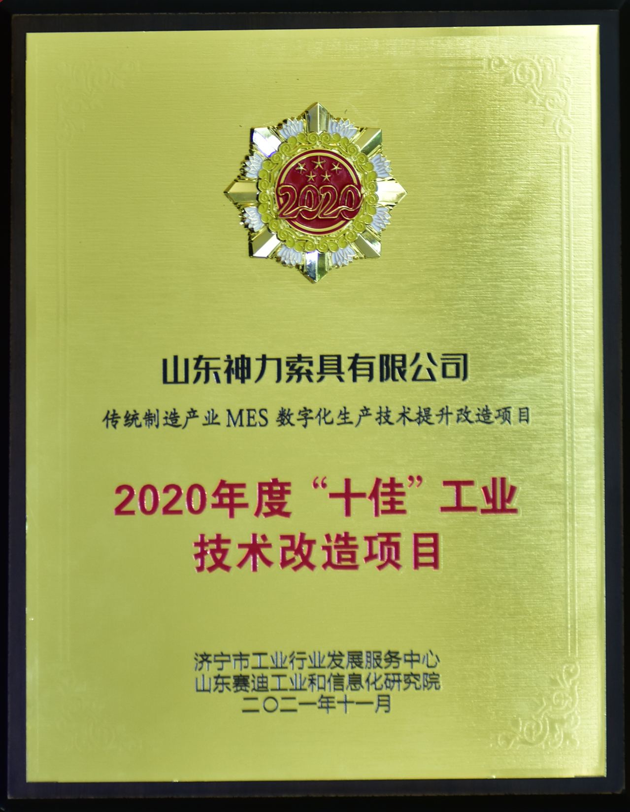 神力索具申请参评的“传统制造产业MES数字化生产技术提升改造项目”在众多技术改造项目中脱颖而出,荣获“2020年度‘十佳’工业技术改造项目”荣誉称号。这是我公司继去年获得济宁市首届工业十佳荣誉后,再次获得的又一殊荣,彰显了我公司在提升传统行业技术改造和技术创新方面的决心和实力。在申报过程中,市驻企干部、山东理工职业学院国际教育学院副院长冯超给予了大力支持。
