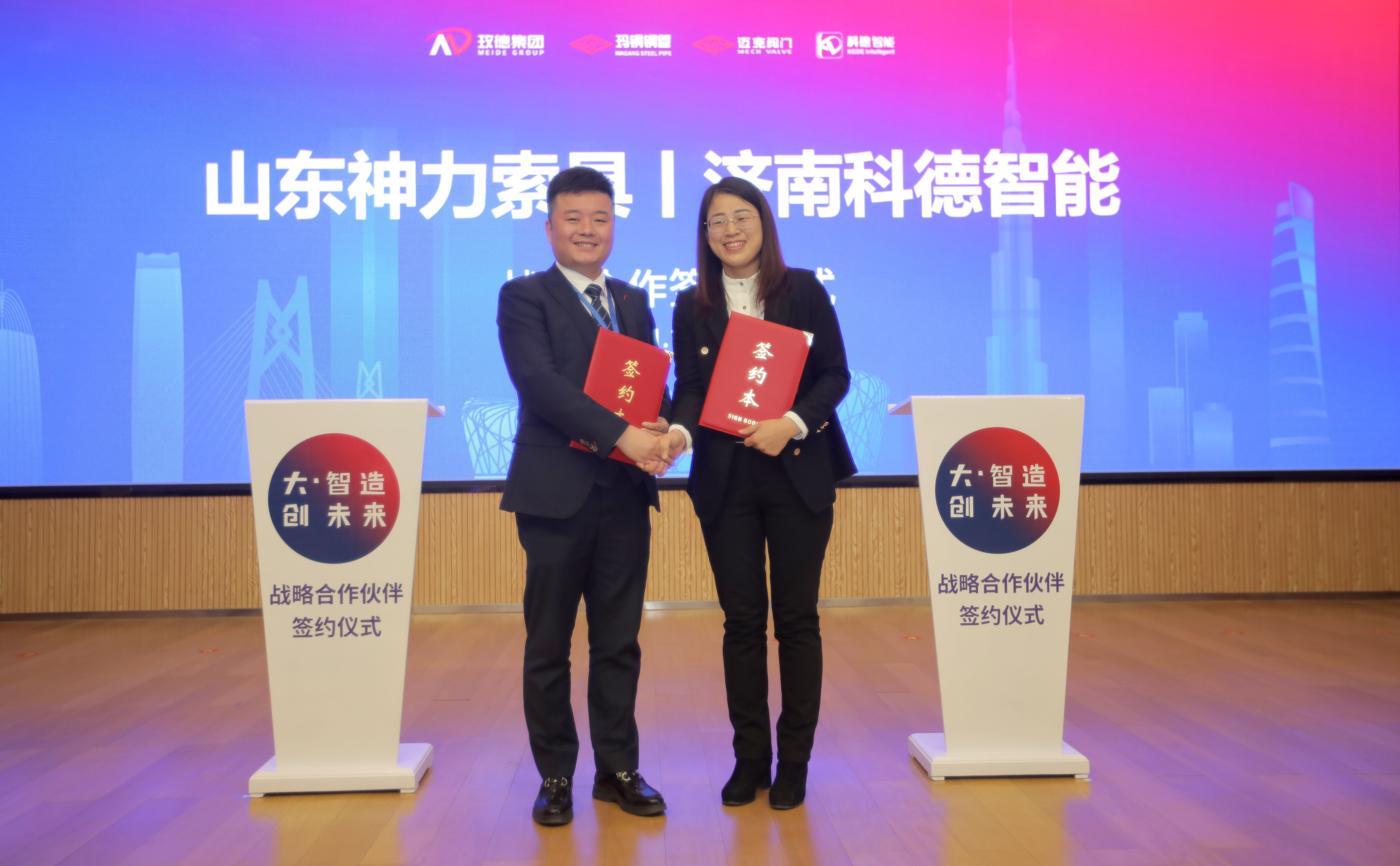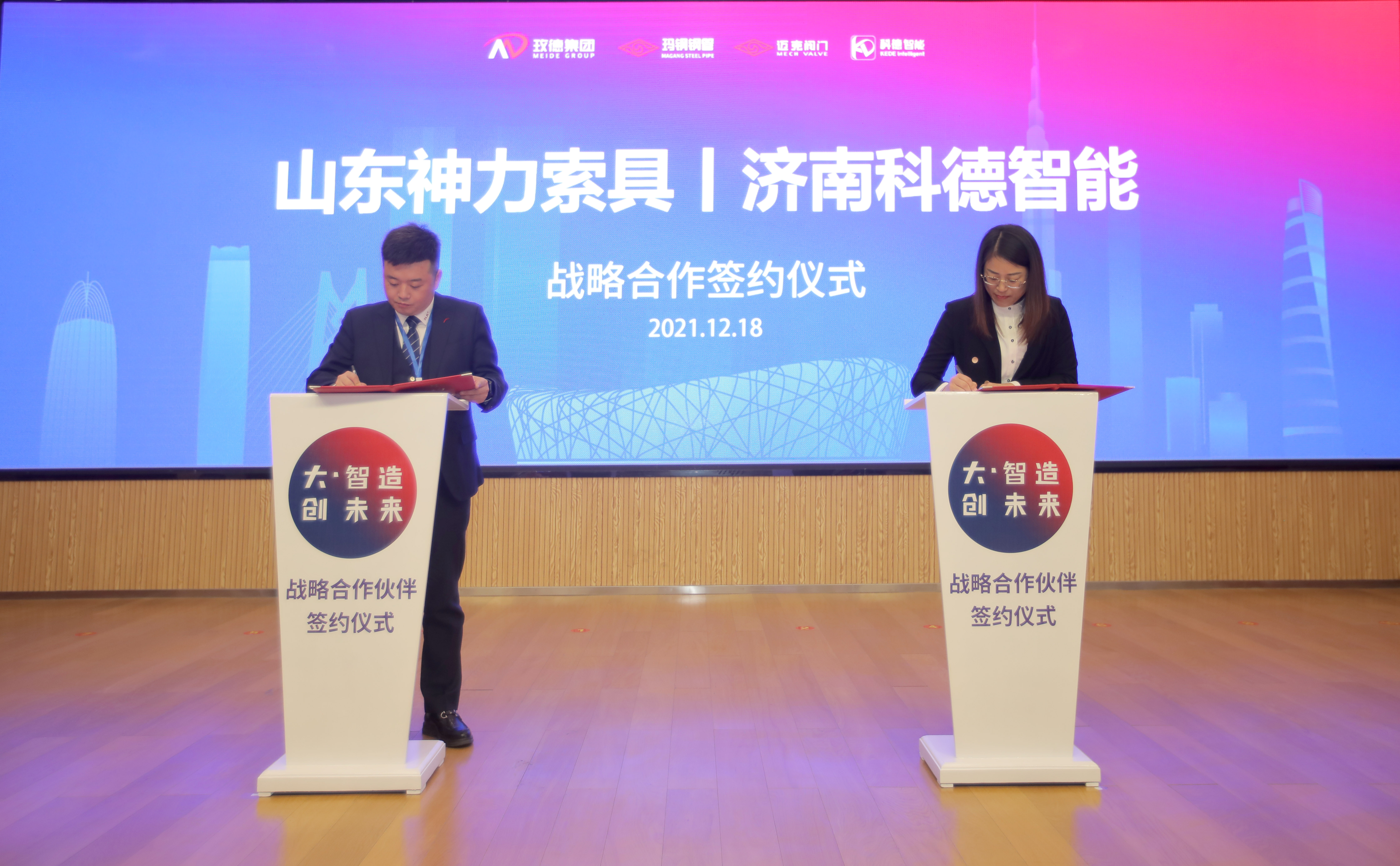 为积极响应国家数字化发展战略,加快推进旺财28APP官方版-旺财28APP最新版-pgwc公司的数字化转型升级,实现索具行业首个智能化、数字化、绿色供应链现代化工厂,旺财28APP官方版-旺财28APP最新版-pgwc有限公司与玫德集团济南科德智能科技有限公司经过深入探讨交流,双方于2021年12月18日共同签订战略合作协议。