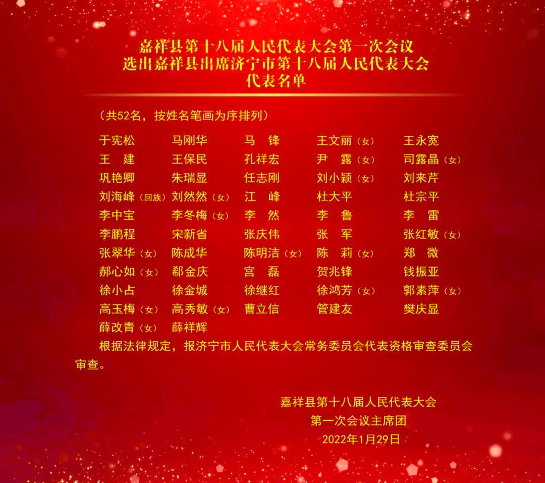 1月29日,嘉祥县第十八届人民代表大会第一次会议选举出嘉祥县出席济宁市第十八届人民代表大会代表,神力索具总经理杜大平同志全票(314张)当选济宁市第十八届人民代表大会代表。这是神力人的荣誉,也是社会各界对神力索具多年来积极践行社会责任、推动社会服务事业发展的高度认可。