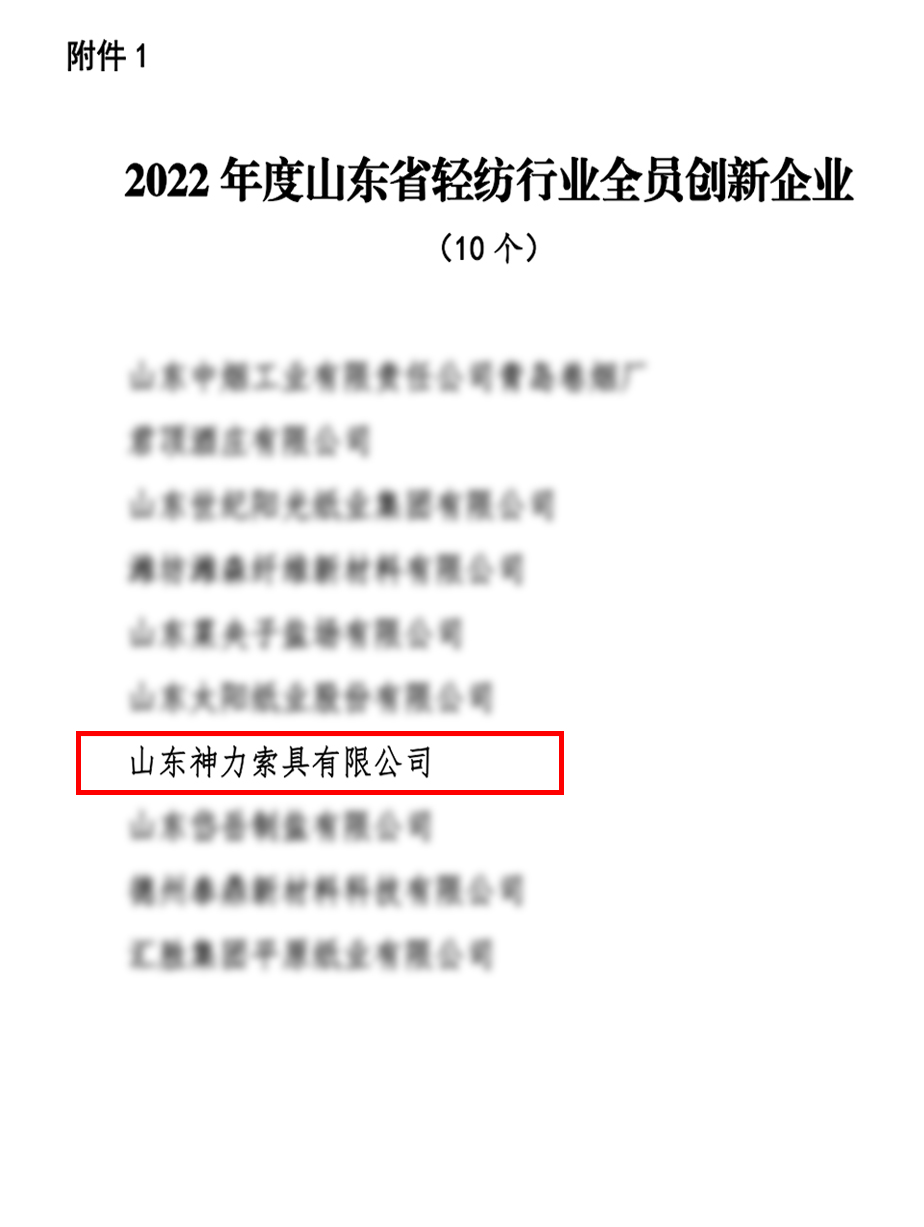 3、推动科技创新,规范生产管理推动科技创新,规范生产管理。助力企业不断推动自动化、智能化、数字化“机器换人”计划,荣获多项创新成果,于2022年12月被山东省轻纺行业工会委员会授予“2022年度山东省轻纺行业全员创新企业”称号。