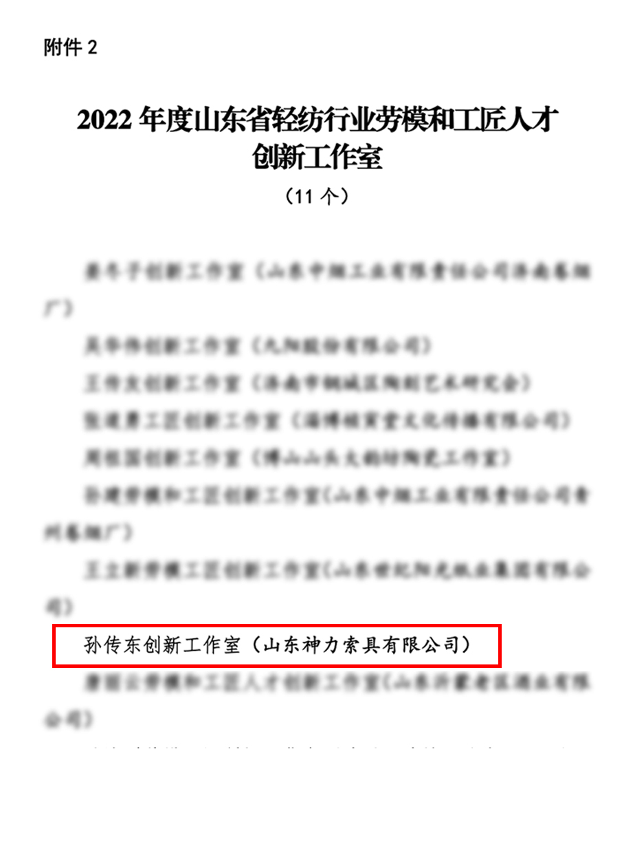 4、重视职工教育培训,加快技能人才队伍建设。近年来多次开展职工职业技能培训,覆盖率达80%以上,定期开展劳动竞赛、技能比武等活动,于2022年10月21日成功承办成功举办“神力杯”山东省第十一届五金制品行业技能竞赛。大力弘扬工匠精神,培养“齐鲁工匠”、“济宁工匠”、金属制品行业大工匠、金牌职工、首席技师、特级技师多人;创办技能人才创新工作室共四个,涵盖工艺优化、技术改造、企业管理等方方面面,其中孙传东创新工作室被山东省轻工纺织工会委员会授予“2022年度山东省轻纺行业劳模和工匠人才创新工作室”称号。