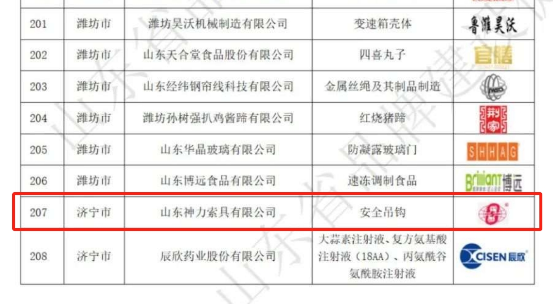 根据《山东知名品牌认定管理办法》的规定,遵循科学、客观、公开、公平、公正、自愿、不收费的原则,经组织申报、资格审查、大数据信息挖掘、信息化系统平台评审、专家评审、认定专家委员会审议等工作程序,神力索具安全吊钩榜上有名,光荣入选“山东知名品牌(产品)认定名单”。