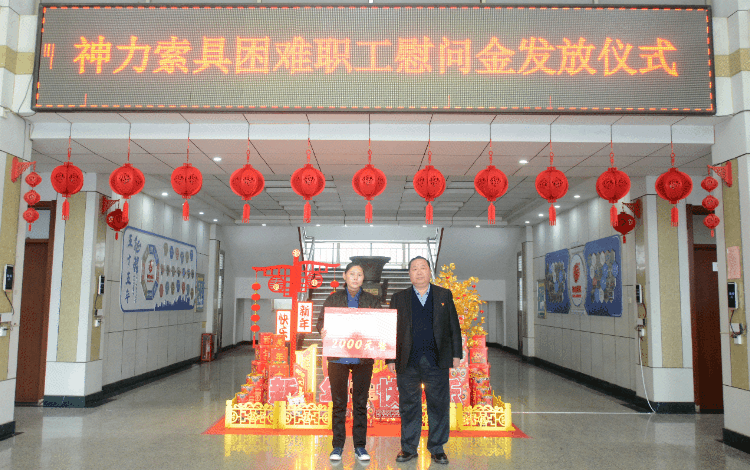 值此2024年春节来临之际,在神力索具董事长杜亚中、总经理杜大平授意下,公司工会在全公司范围内组织发布了困难职工摸排工作,共确定15名因本人或近亲属大病等原因致困的职工。公司根据实际情况为其发放2000元、1000元的爱心救济金,本次共计发放救济金17000元。困难职工纷纷表示:感恩公司、感谢董事长和总经理给予旺财28