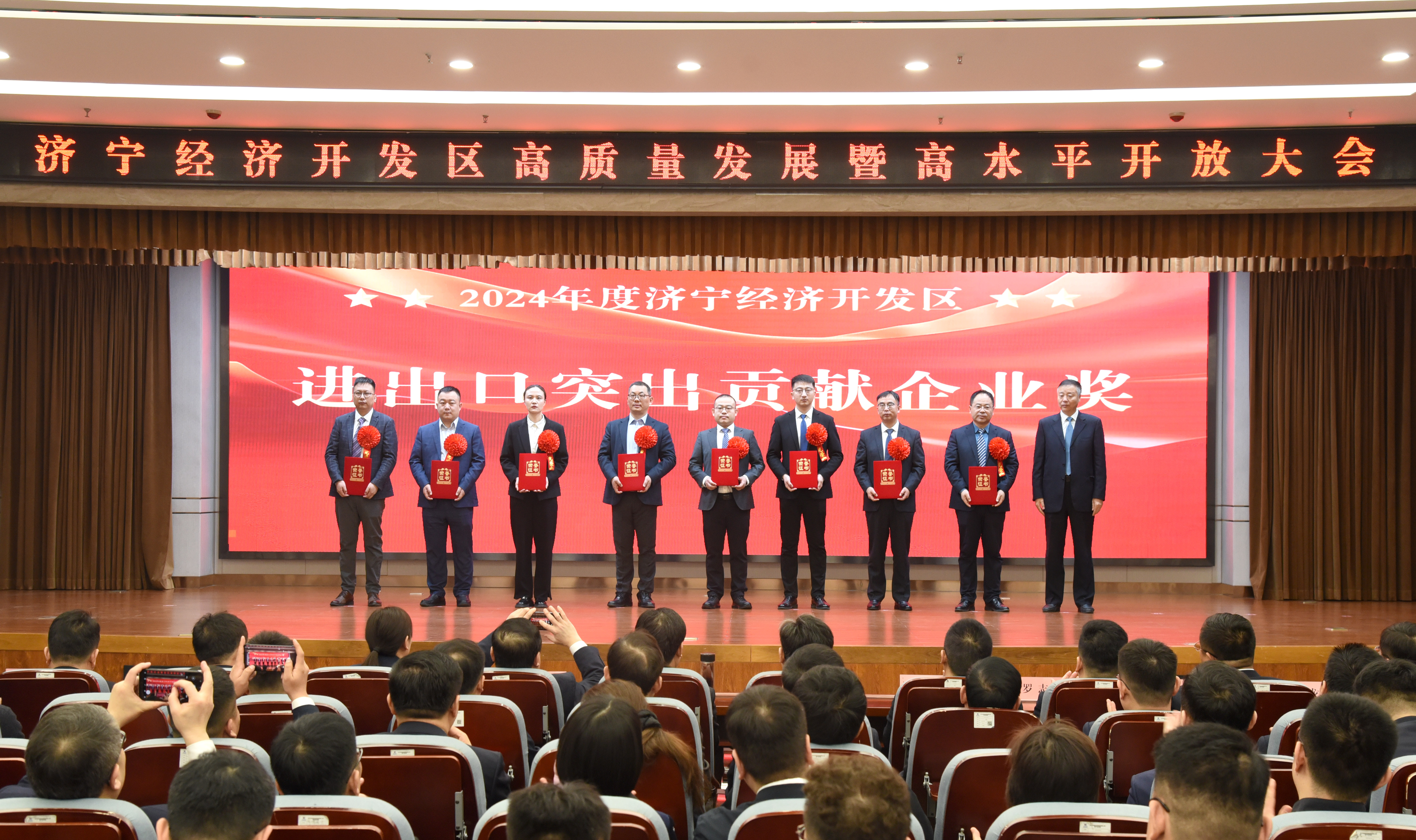 在济宁经开区第二届高质量发展暨高水平开放大会上,旺财28APP官方版-旺财28APP最新版-pgwc凭借在产业升级、区域共建及创新实践中的卓越表现,一举荣获“经济发展突出贡献企业”“支持经开区发展突出贡献奖”“创新创优企业”“进出口突出贡献企业”四项殊荣!