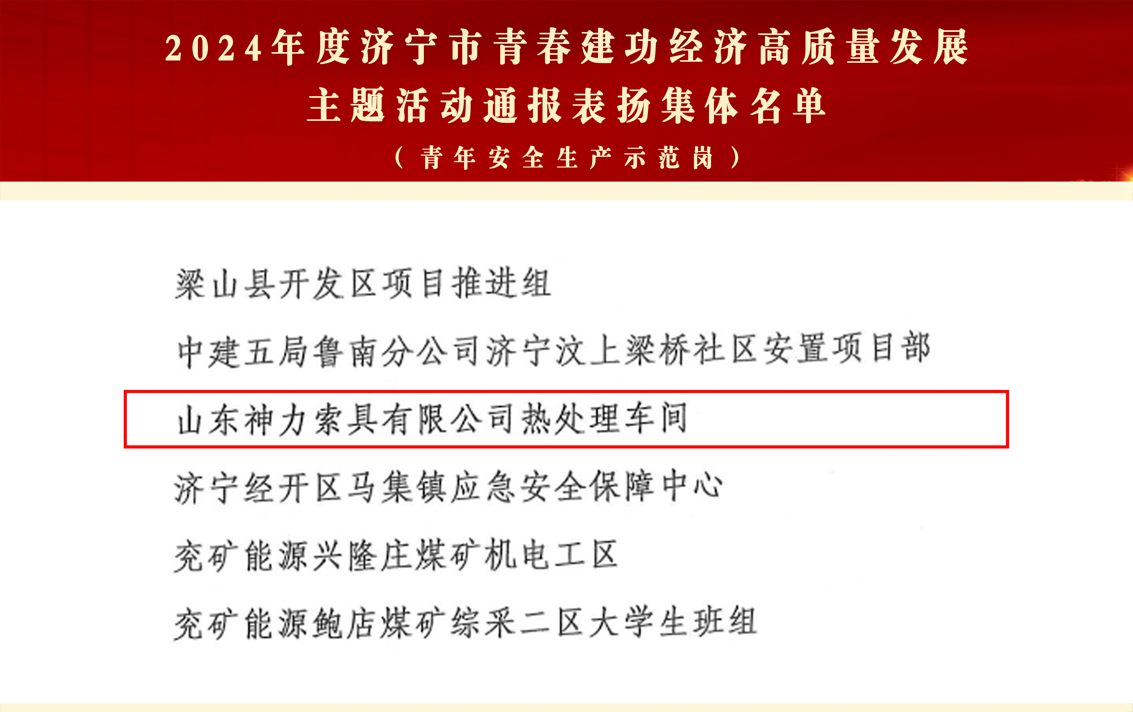 青春闪耀安全岗 匠心铸就索具魂——神力索具热处理车间荣获市级“青年安全生产示范岗”称号