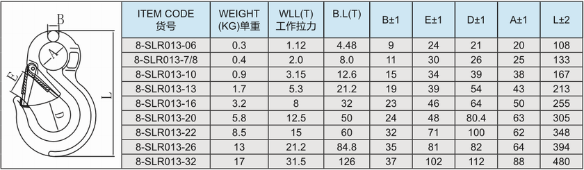 SLR013 80级含舌眼型吊钩