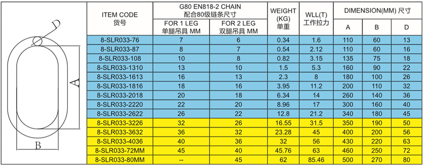 ◇ 用于G80 单腿或2腿链条吊具(依据EN818-4标准)。