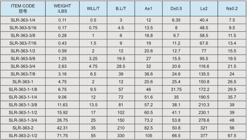 以上表格中工作拉力是基于0度受力方向(见上图)