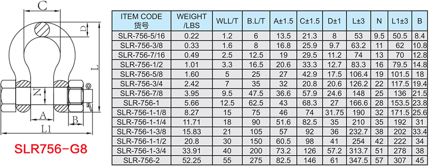 SLR756-8级螺栓销合金钢弓型卸扣
